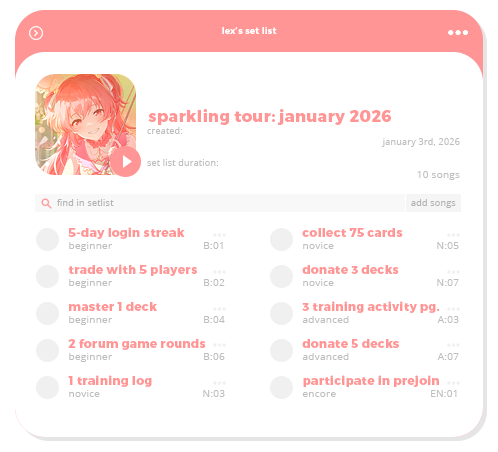 Welcome to Diva, Lex's TCG collective. Trade terms are on my trade form page, but I'm a very flexible trader! Feel free to message me if you're unsure about anything.